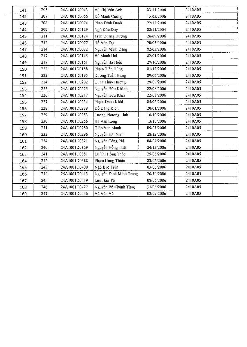 Khoa Công nghệ thông tin thông báo danh sách sinh viên tham gia học Giáo dục Quốc phòng & An ninh đợt 1 từ ngày 08/12/2025 - 26/12/2025 các lớp 2410A01; 2410A02; 2410A03; 2410A04; 2410A05 như sau: