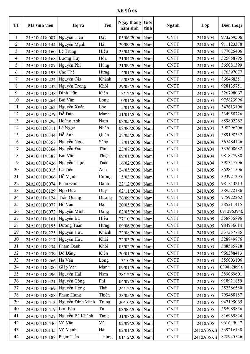 Khoa Công nghệ Thông tin thông báo lịch đón Sinh viên học GDQP&AN tại cơ sở Văn Giang, Hưng Yên cụ thể như sau: