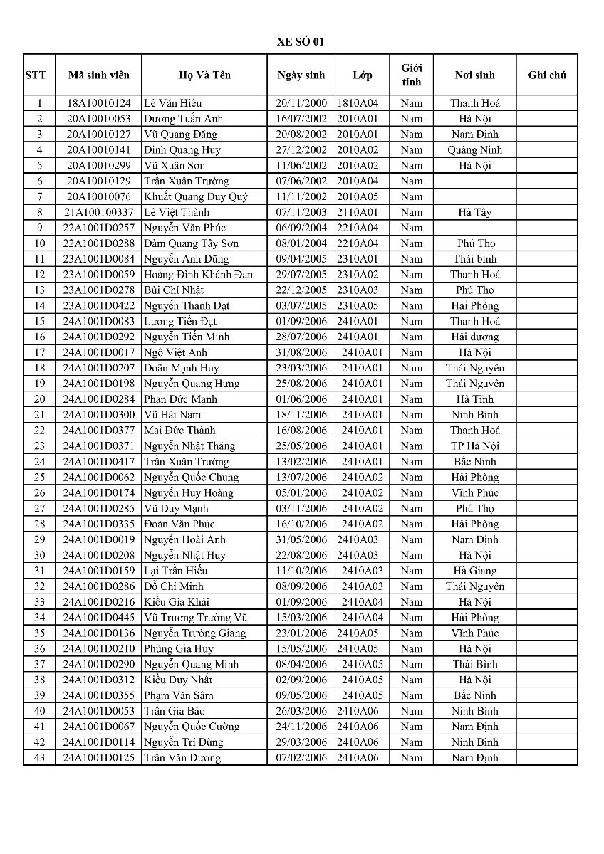 Nhận bàn giao sinh viên thầy Điêu Thái Hồng, số điện thoại: 0936896683