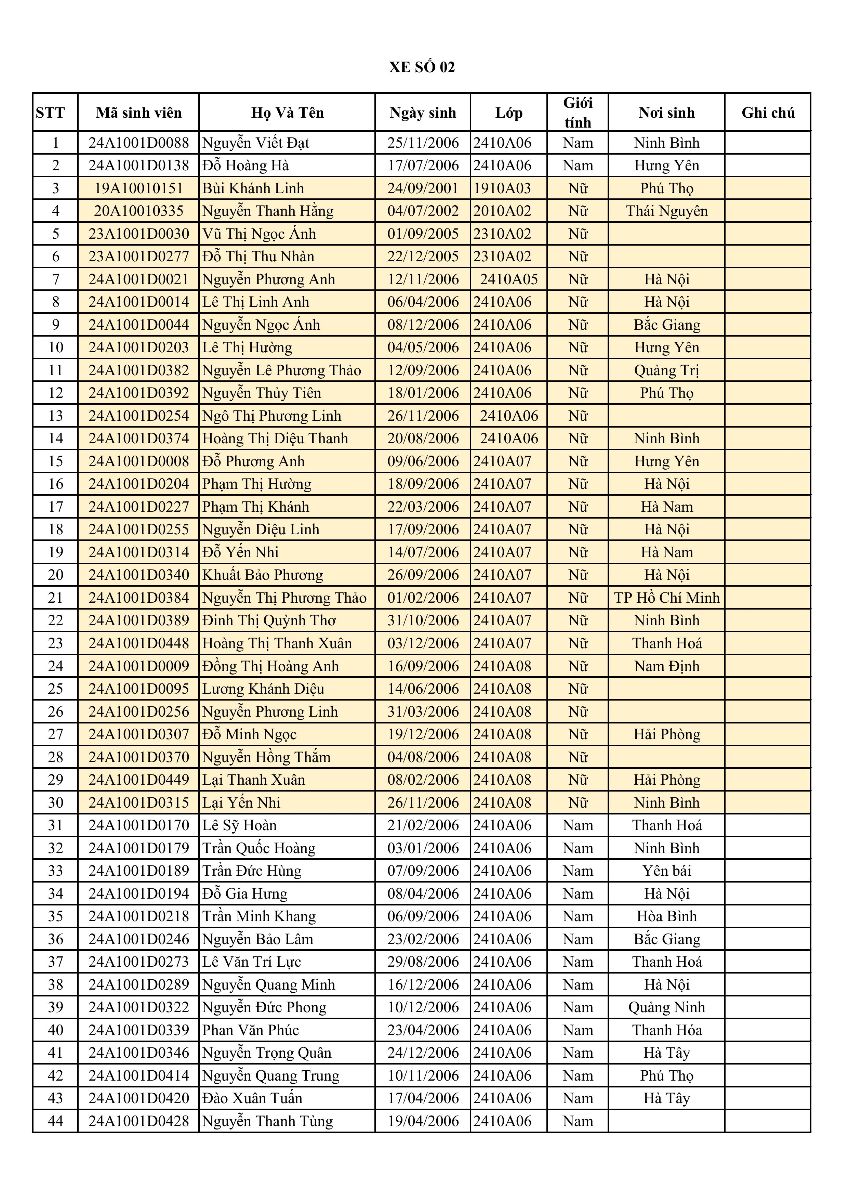 Khoa Công nghệ Thông tin thông báo lịch đón Sinh viên học GDQP&AN tại cơ sở Văn Giang, Hưng Yên cụ thể như sau: