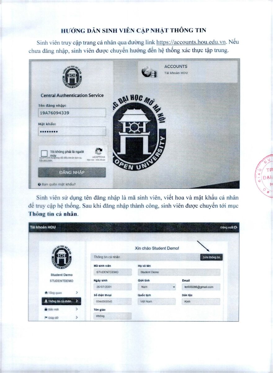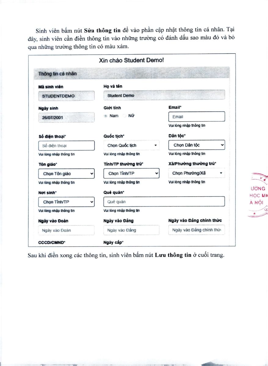 3. Hướng dẫn SV cập nhật thông tin: