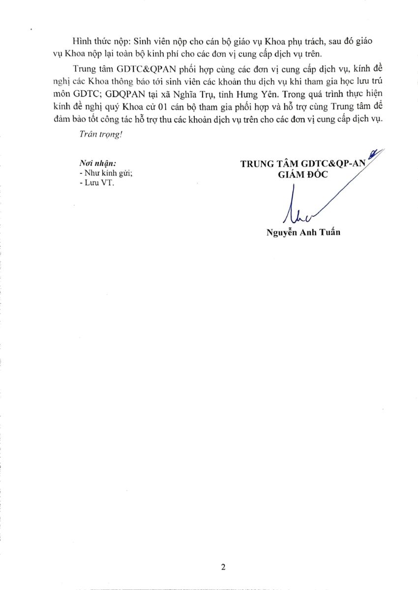 Đề nghị các sinh viên trong diện thu chuẩn bị đầy đủ kinh phí và đến đúng thời gian quy định để hoàn thành nghĩa vụ nộp kinh phí trước khi tham gia khóa học.