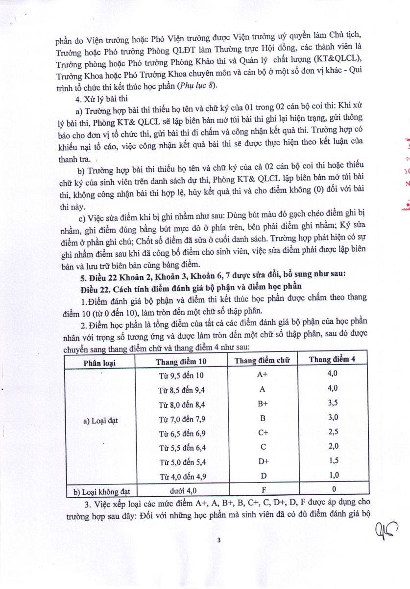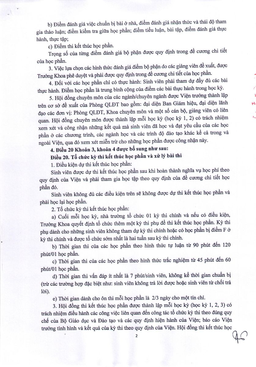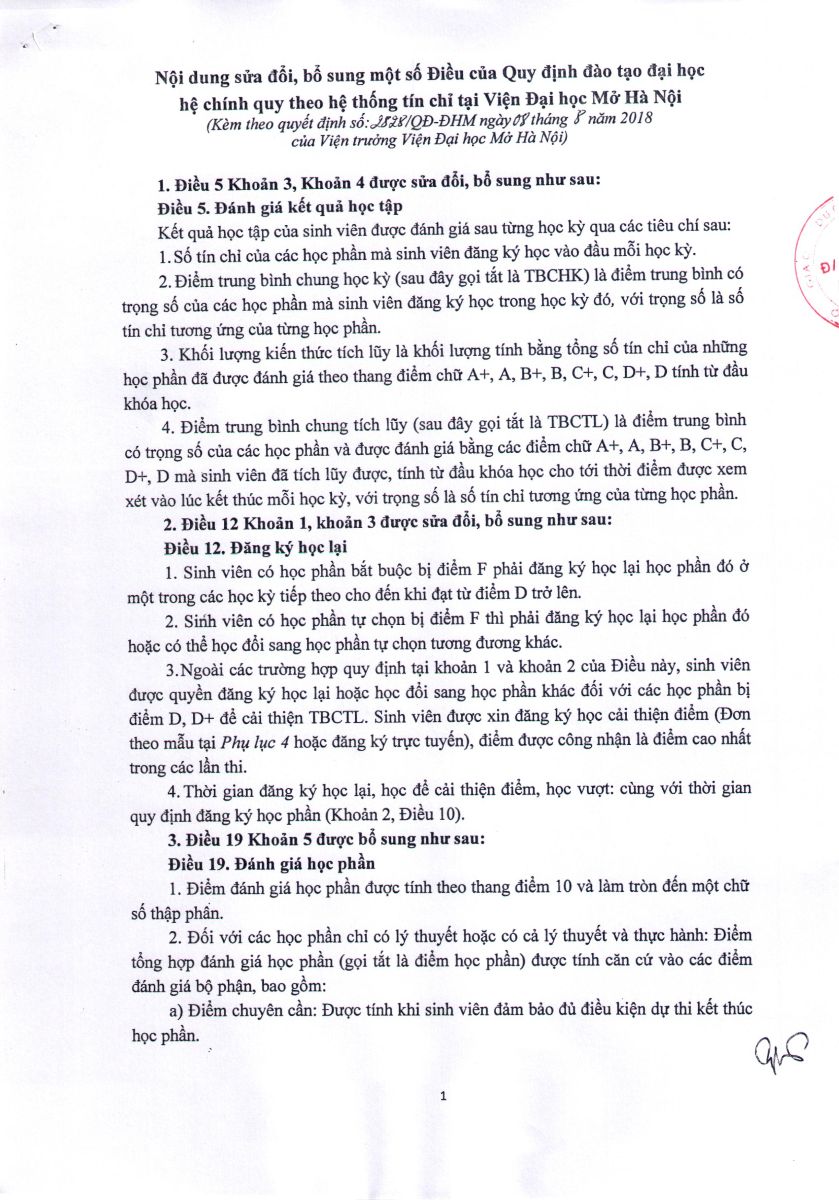 Thông báo Nội dung sửa đổi, bổ sung một số điều của Quy định đào tạo đại học hệ chính quy theo hệ thống tín chỉ tại Đại học Mở Hà Nội