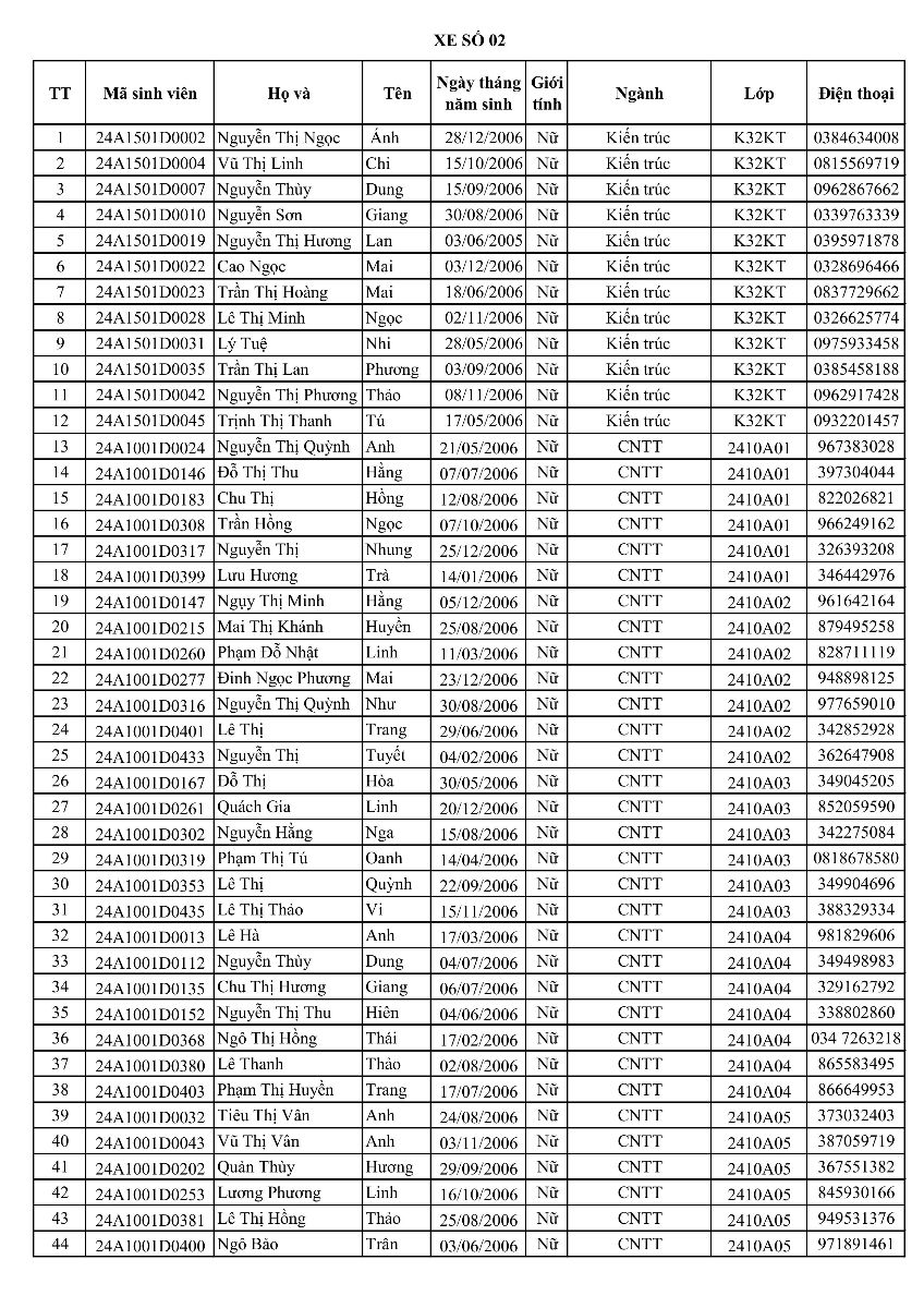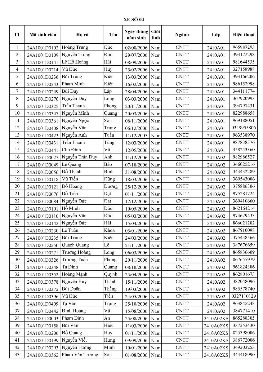 Khoa Công nghệ Thông tin thông báo lịch đón Sinh viên học GDQP&AN tại cơ sở Văn Giang, Hưng Yên cụ thể như sau:
