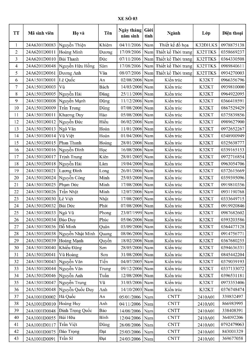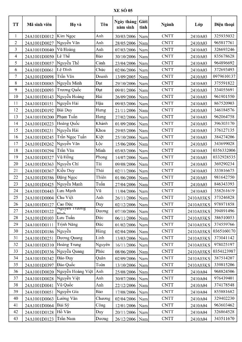 Nhận bàn giao sinh viên thầy Điêu Thái Hồng, số điện thoại: 0936896683