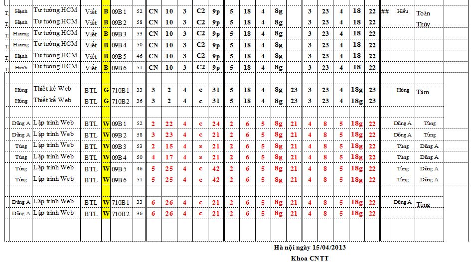 Thông báo v/v thay đổi lịch thi HK II một số môn (16/04/2013)